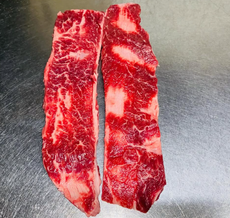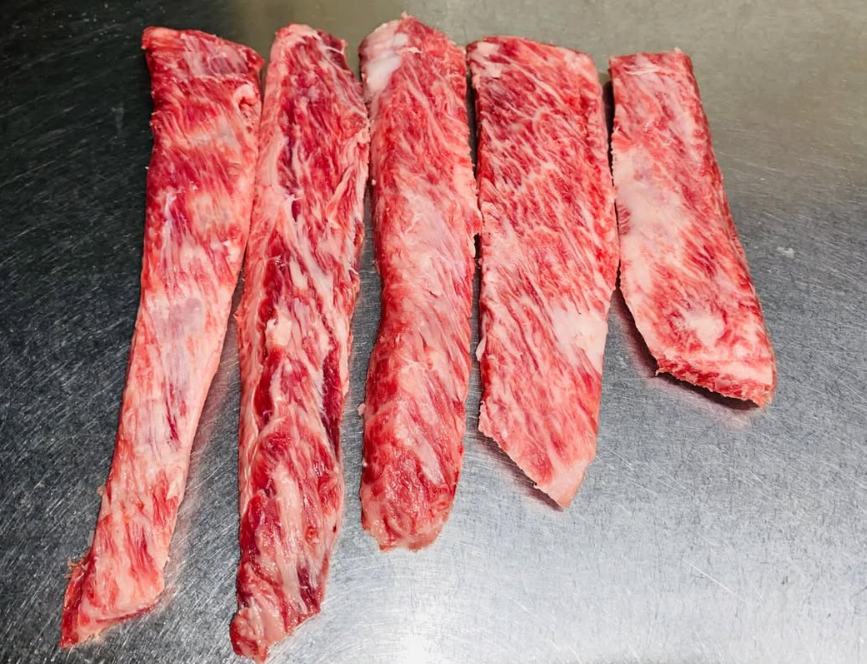肋骨の骨と骨の間にある部位で、赤身と脂身が重なり合い、程よい弾力と強い旨味が特徴です。